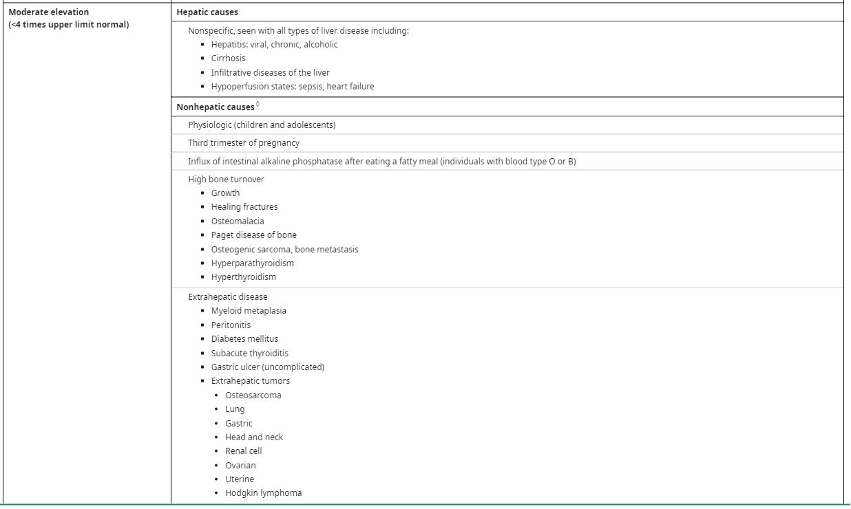 Differential diagnosis — If the alkaline phosphatase elevation is isolated (ie, the other routine liver biochemical test levels are normal), is confirmed to be of hepatic origin, and persists over time, chronic cholestatic or infiltrative liver diseases should be considered. The most common causes include partial bile duct obstruction, primary biliary cholangitis (PBC), primary sclerosing cholangitis, and certain drugs, such as androgenic steroids and phenytoin. Infiltrative diseases include sarcoidosis, other granulomatous diseases, amyloidosis, and, less often, unsuspected cancer that is metastatic to the liver.